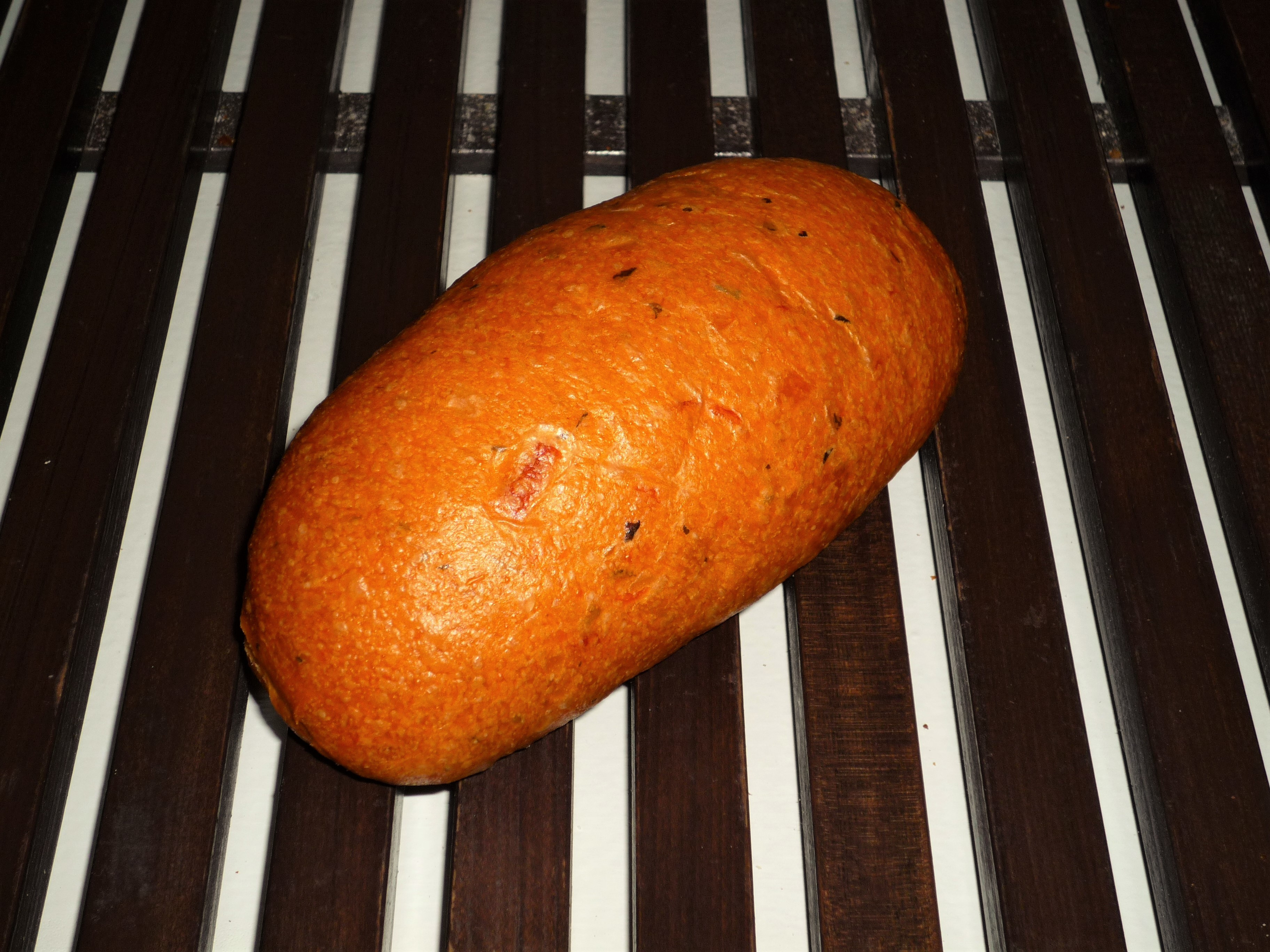 自家製酵母のルヴァンリキットを使用したイタリアのパキッとした食感のトマト味のスティックです。オリーブオイル・トマトペースト・ドライトマトを使用しております。
